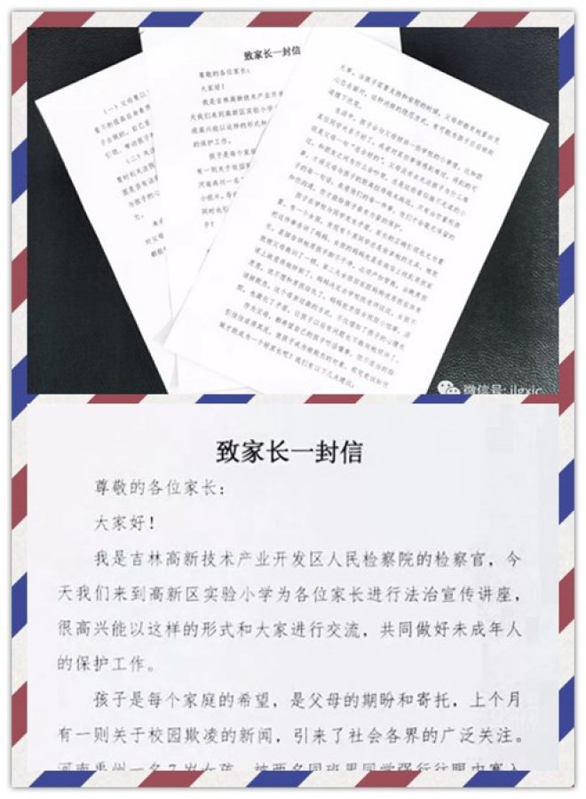 为贯彻落实最高检“一号检察建议”,扎实开展“法治进校园”工作,强化家庭监护职责,凝聚护航青少年健康成长合力,吉林高新技术产业开发区检察院检察官们撰写了以“成长自...