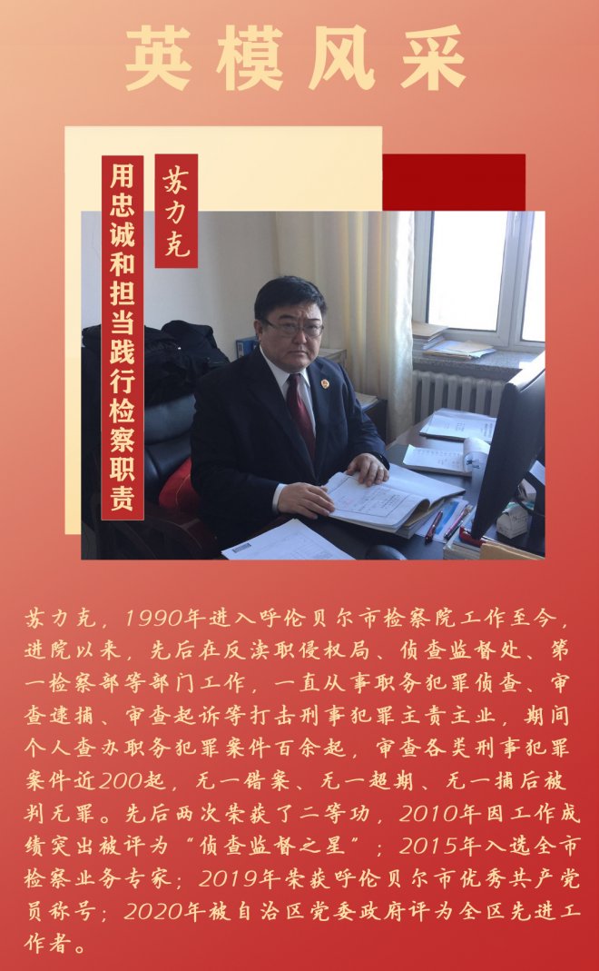 2021-05-10【导语】为扎实推进政法队伍教育整顿工作,弘扬英模精神,筑牢干警政治忠诚,营造学习先进、争当先进的良好氛围,本公众号特开设“榜样的力量”专栏,用鲜活的榜样、身边的...
