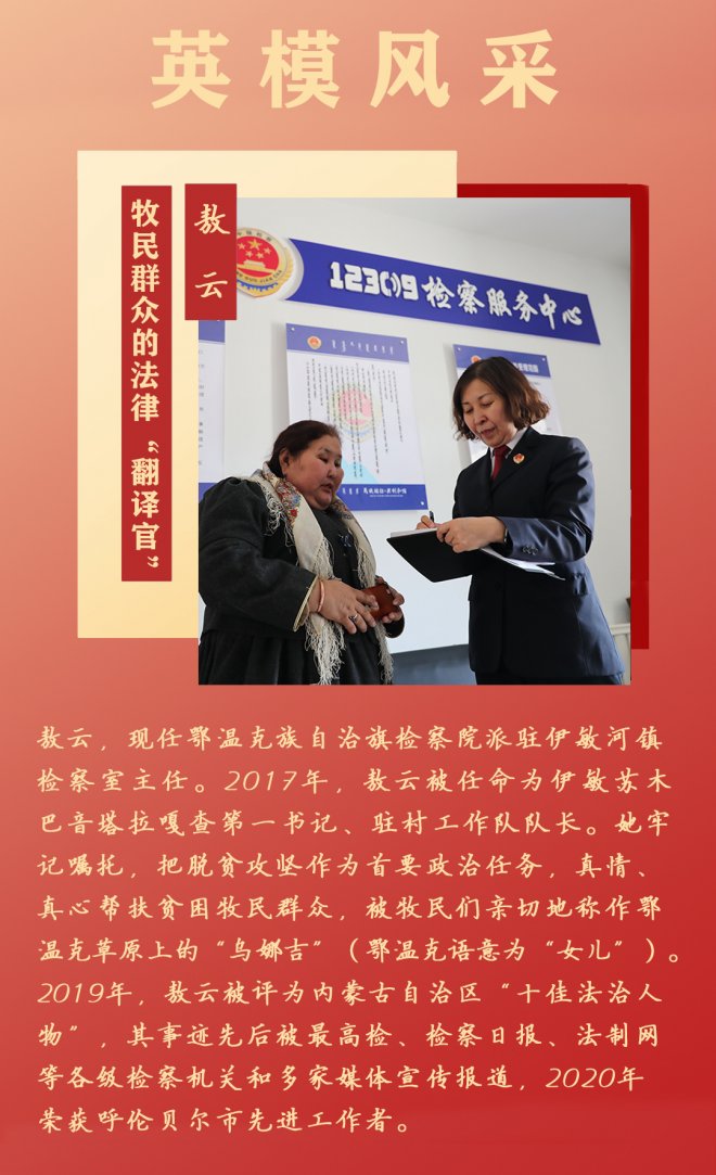 永葆初心、践行使命,她是鄂温克草原牧民群众的法律“翻译官” 敖云是鄂温克族自治旗人民检察院仅有的2名能够熟练使用汉语、蒙古语、鄂温克语、达翰尔语四种语言办理案件...