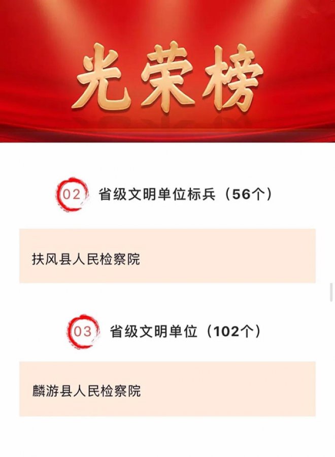 近日,省委、省政府下发了《关于命名表彰陕西省2018-2020年社会主义精神文明建设先进集体的决定》,宝鸡市检察机关2家单位上榜。其中,扶风县人民检察院被省委、...