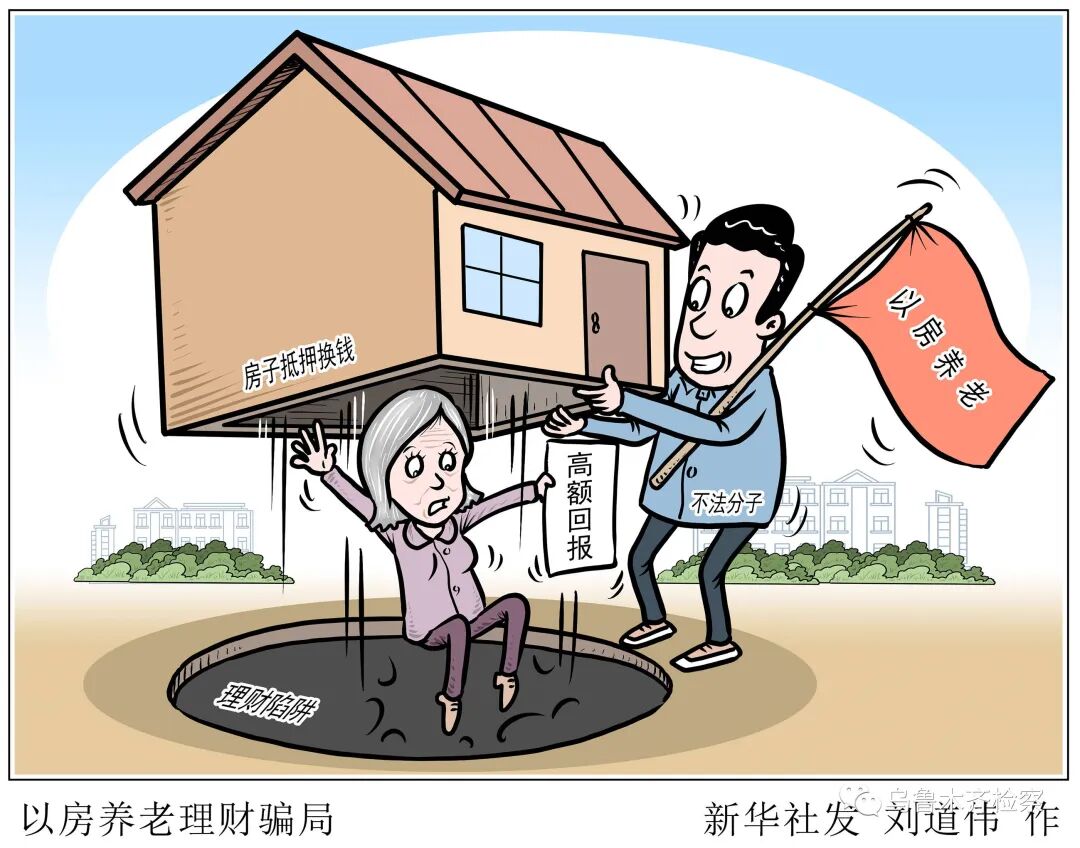诈骗分子将目标瞄准老年人的房子,推出“以房养老”项目,忽悠老人抵押房产贷款,将贷到的钱用于购买“高收益”的“理财项目”。前期老人还能获得收益,而后骗子卷钱跑路,房子也被强制过户,老人钱房两空。