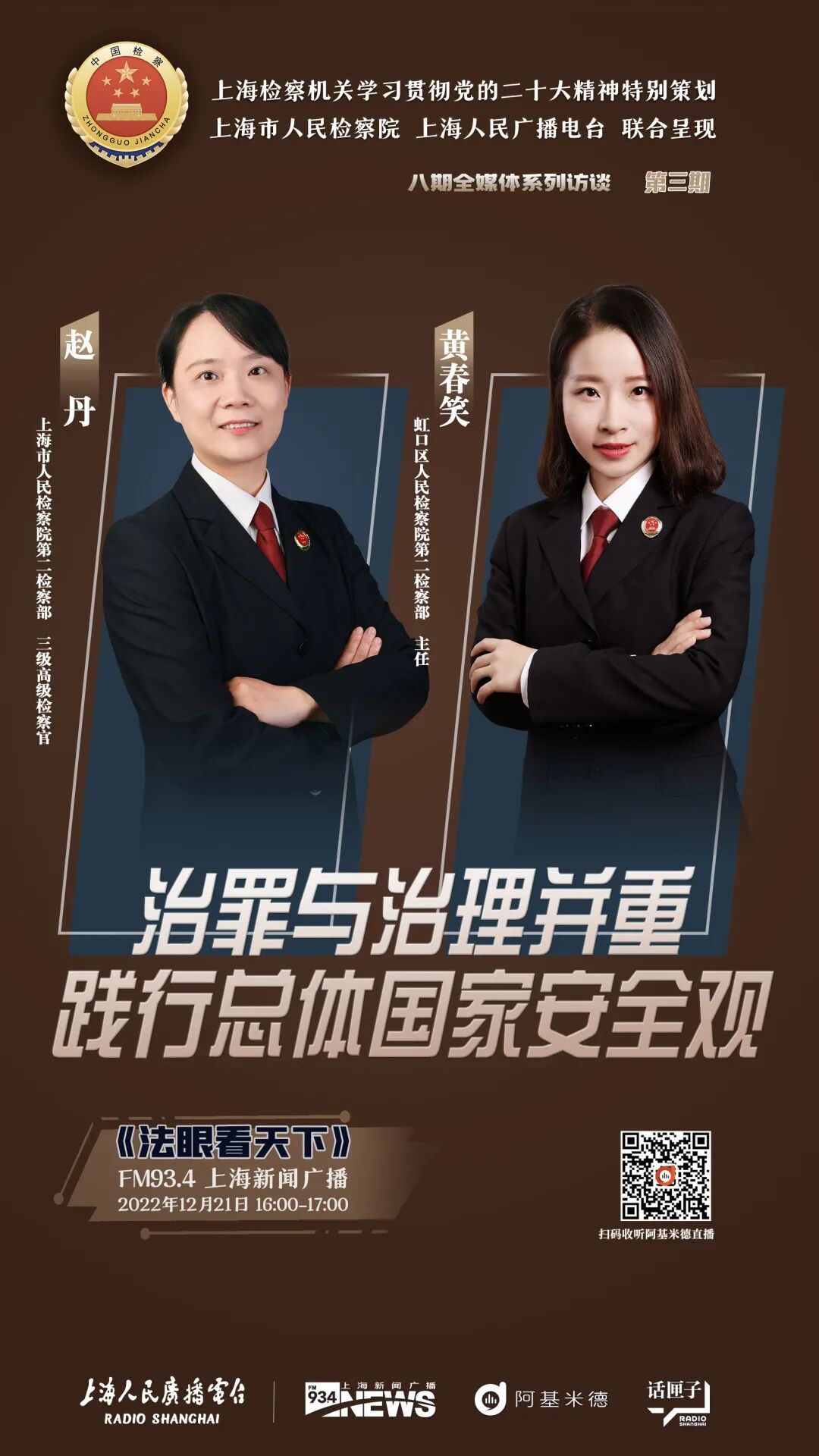 今天16时FM93.4上海新闻广播,和检察官畅谈“治罪与治理并重,践行总体国家安全观”