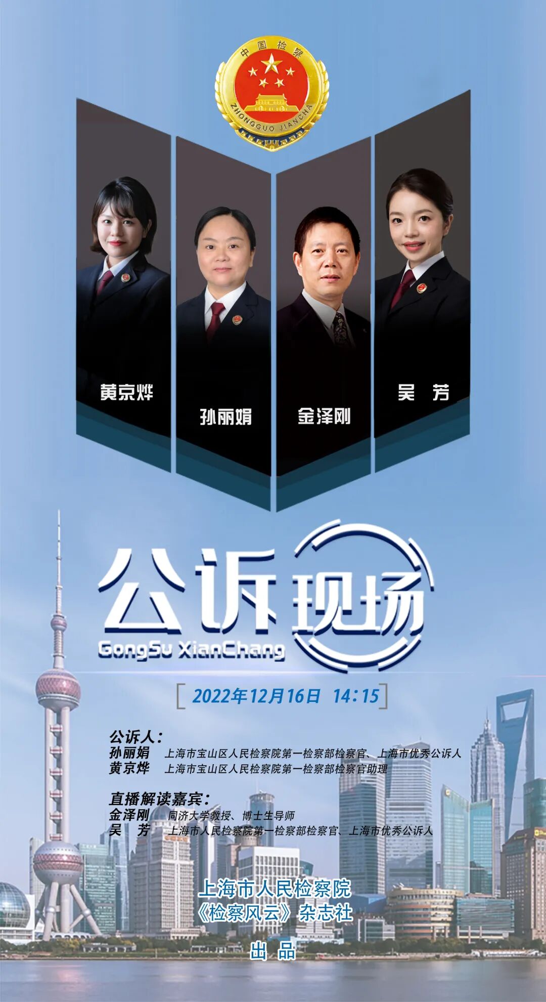 上海市宝山区人民检察院第一检察部检察官孙丽娟、检察官助理黄京烨将出庭支持公诉。同济大学教授、博士生导师金泽刚和上海市人民检察院第一检察部检察官吴芳共同为您解读。