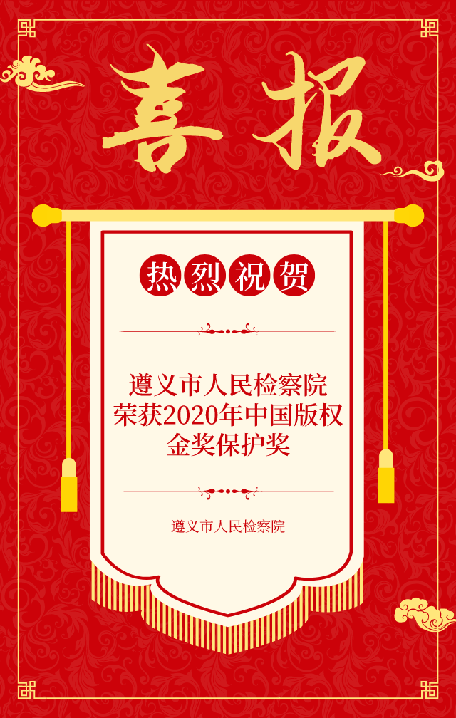 喜报|遵义市检察院荣获2020年中国版权金奖保护奖