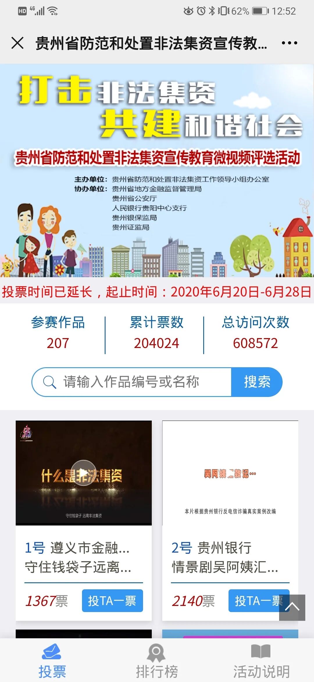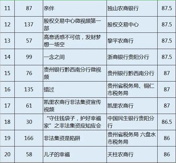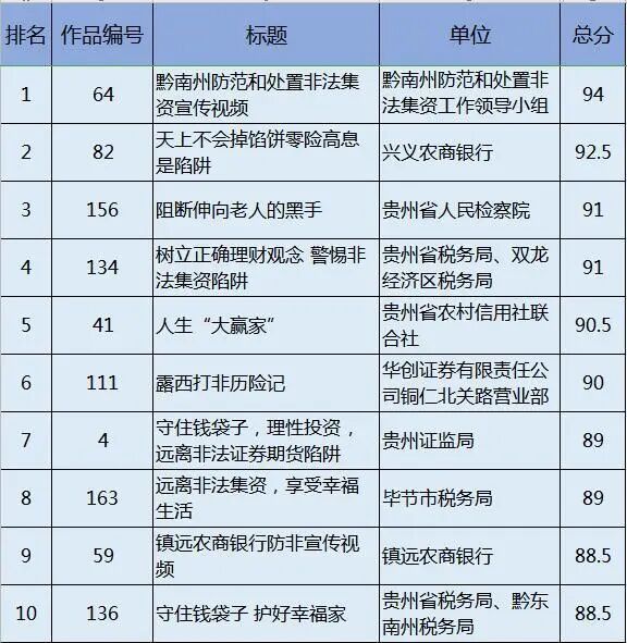 今年总共有209部作品参与了微视频评选活动,视频形式多样,创意丰富,每一个视频都凝聚了创作单位的大量心血,在此谢谢大家为宣传打击非法集资贡献的力量。